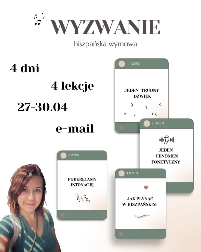 Jestem Agnieszka i zapraszam Cię na niesamowitą przygodę z językiem hiszpańskim! Niezależnie od tego, czy dopiero zaczynasz, czy chcesz doszlifować swoje umiejętności, ze mną odkryjesz tajniki hiszpańskiej wymowy i nauczysz się mówić pewnie. Bez nudnych podręczników i sztywnych lekcji!