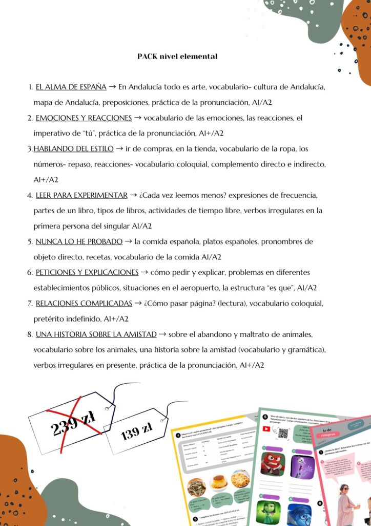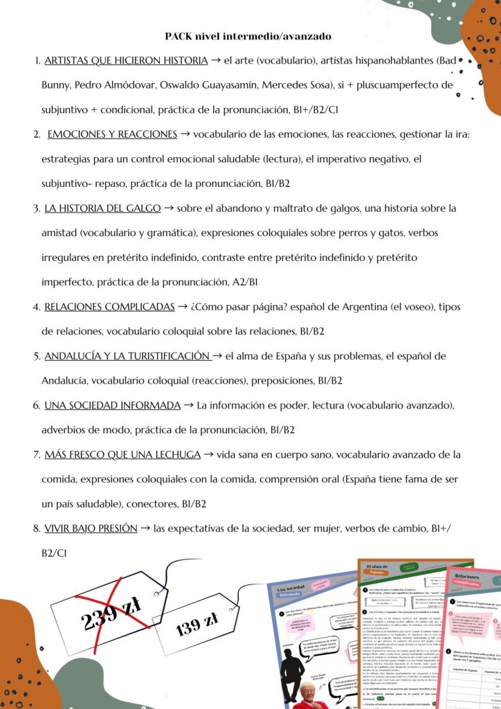 Kompletne materiały na różne poziomy zaawansowania: intermedio oraz avanzado 📝🎓 Możesz je wykorzystywać wiele razy z różnymi grupami.