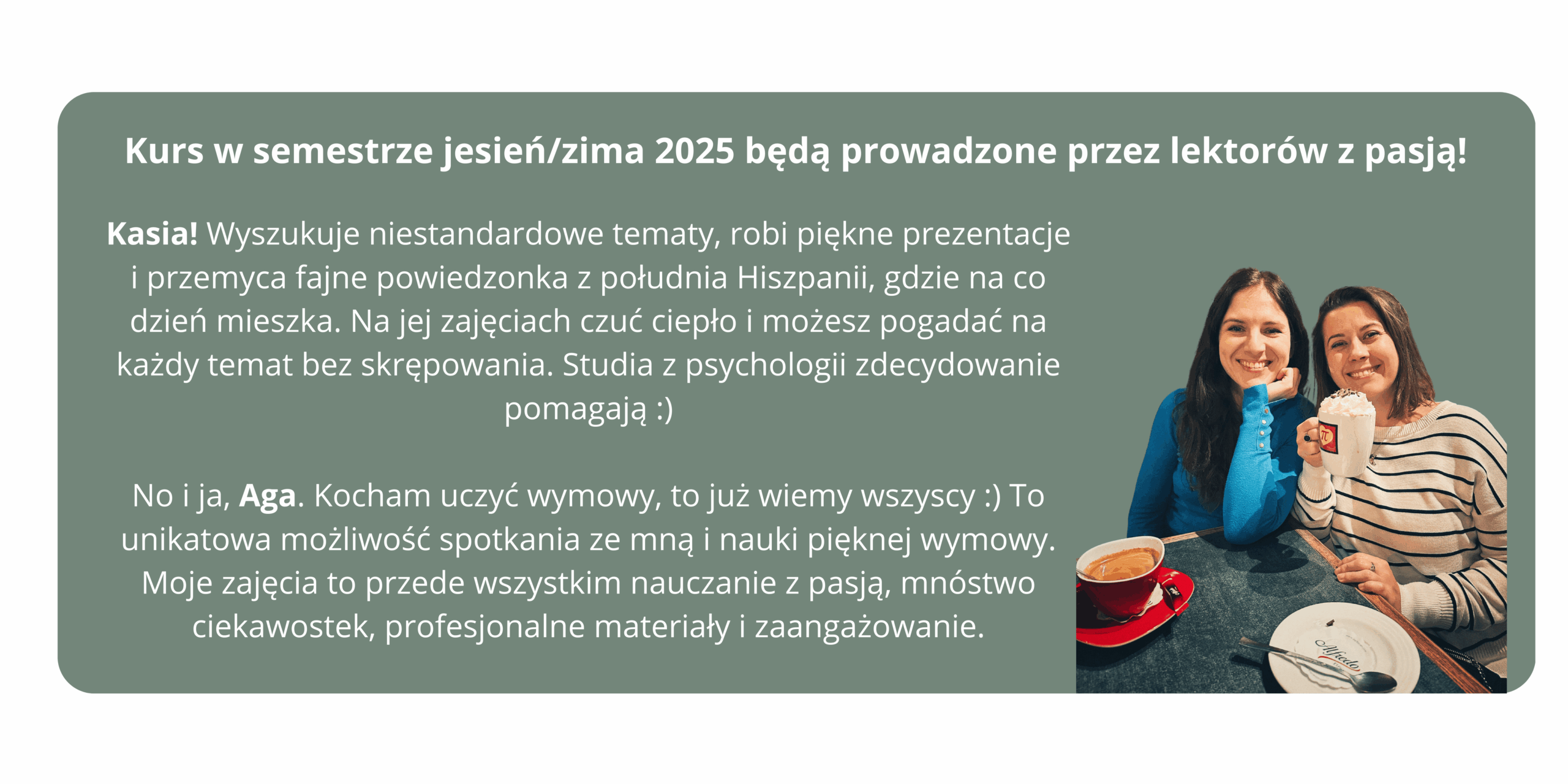 zajęcia ze mną lub z moją wspaniałą lektorką Kasią (zależnie od terminu)
